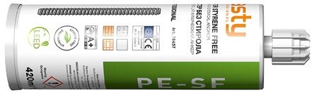 Fasty PE‑SF — двухкомпонентный химический анкер на основе полиэфирной смолы без стирола. Предназначен для установки резьбовых шпилек, болтов и закладных элементов в полнотелых и пустотелых основаниях. Картридж 420 мл.