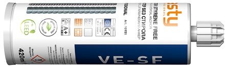 Инъекционный химический анкер FASTY VE-SF 420 мл — двухкомпонентный состав на основе винилэстерной смолы без стирола, предназначенный для анкеровки шпилек и арматуры в бетоне и кирпичной кладке.